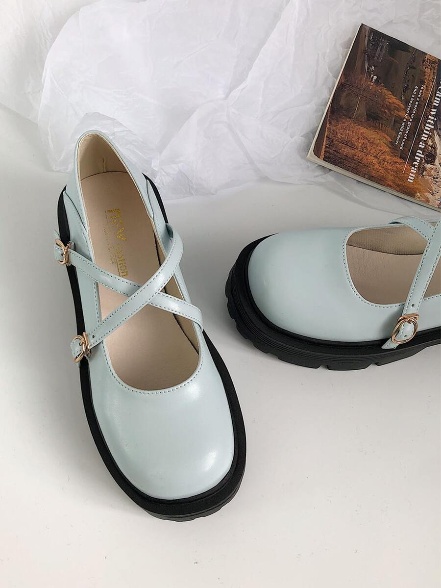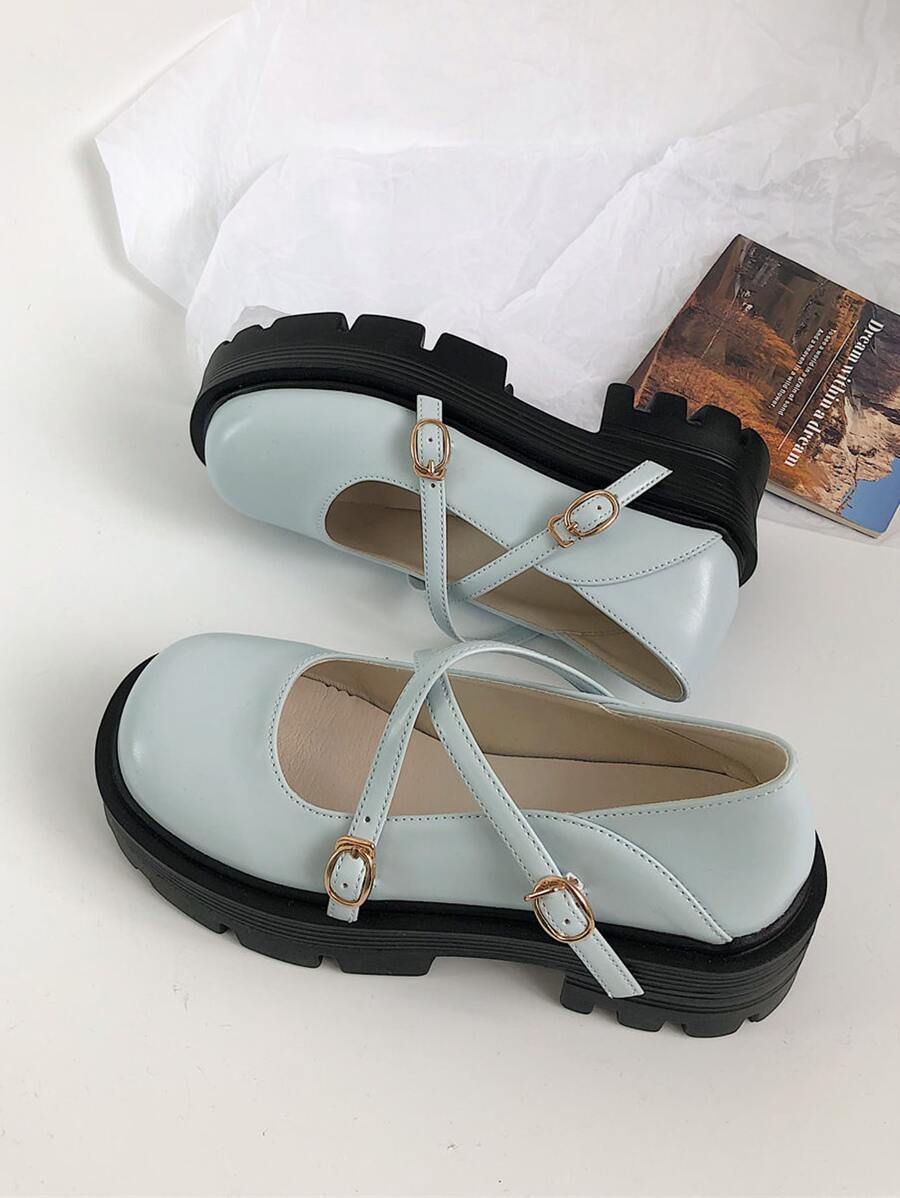 Criss Cross Platform Mary Jane Shoes