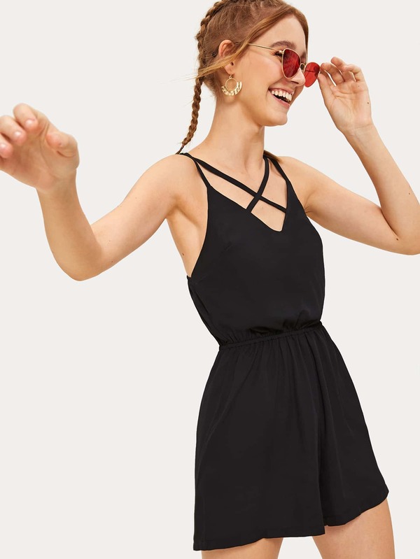 Criss Cross Solid Cami Playsuit