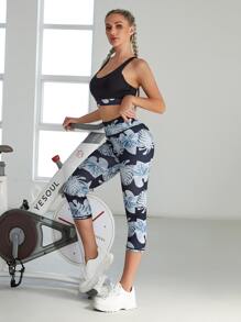 Criss Cross Sports Bra With Tropical Leggings