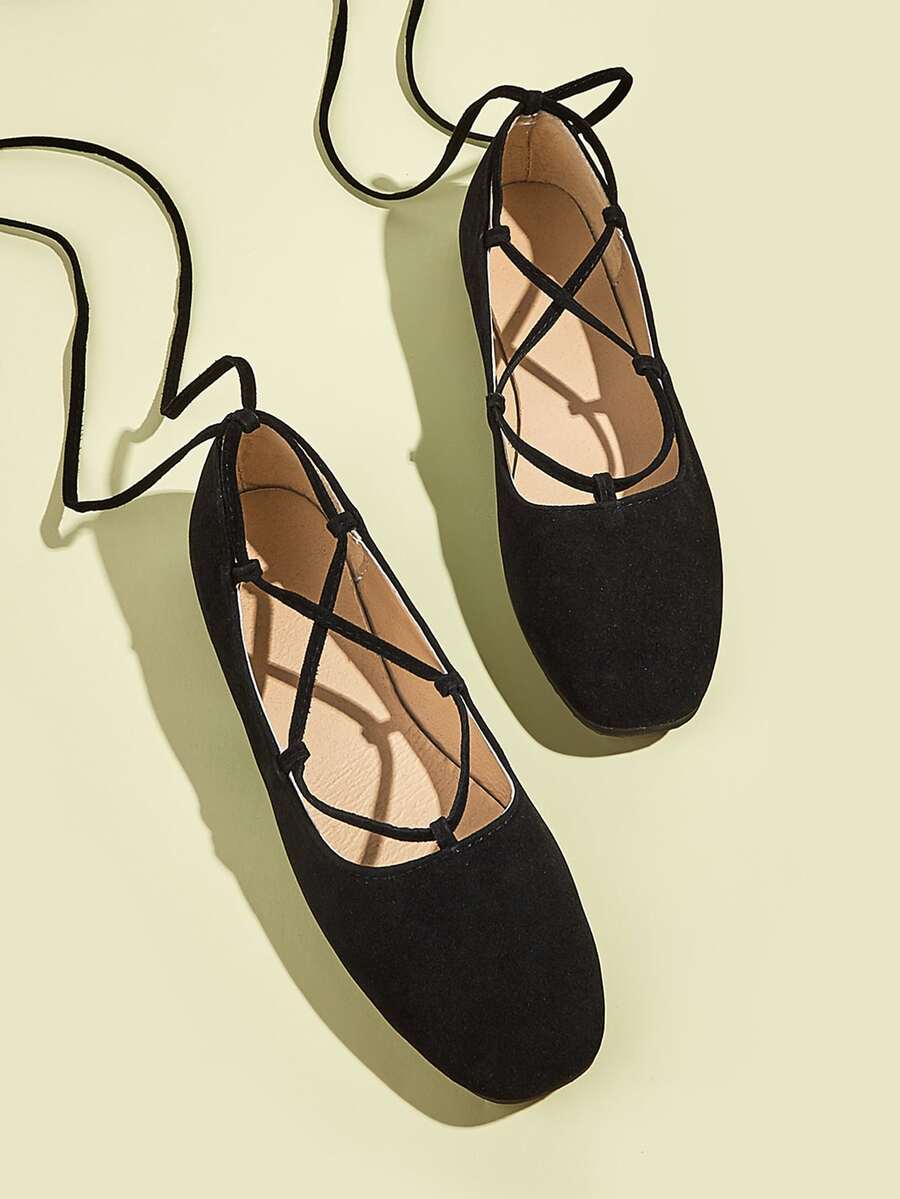 Crisscross Tie Leg Ballet Flats