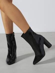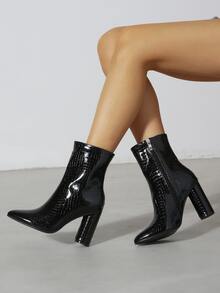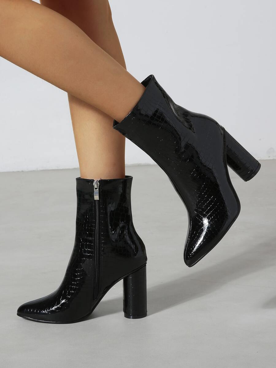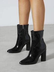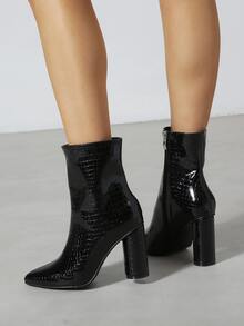 Crocodile Embossed Side Zipper Chunky Heeled Classic Boots