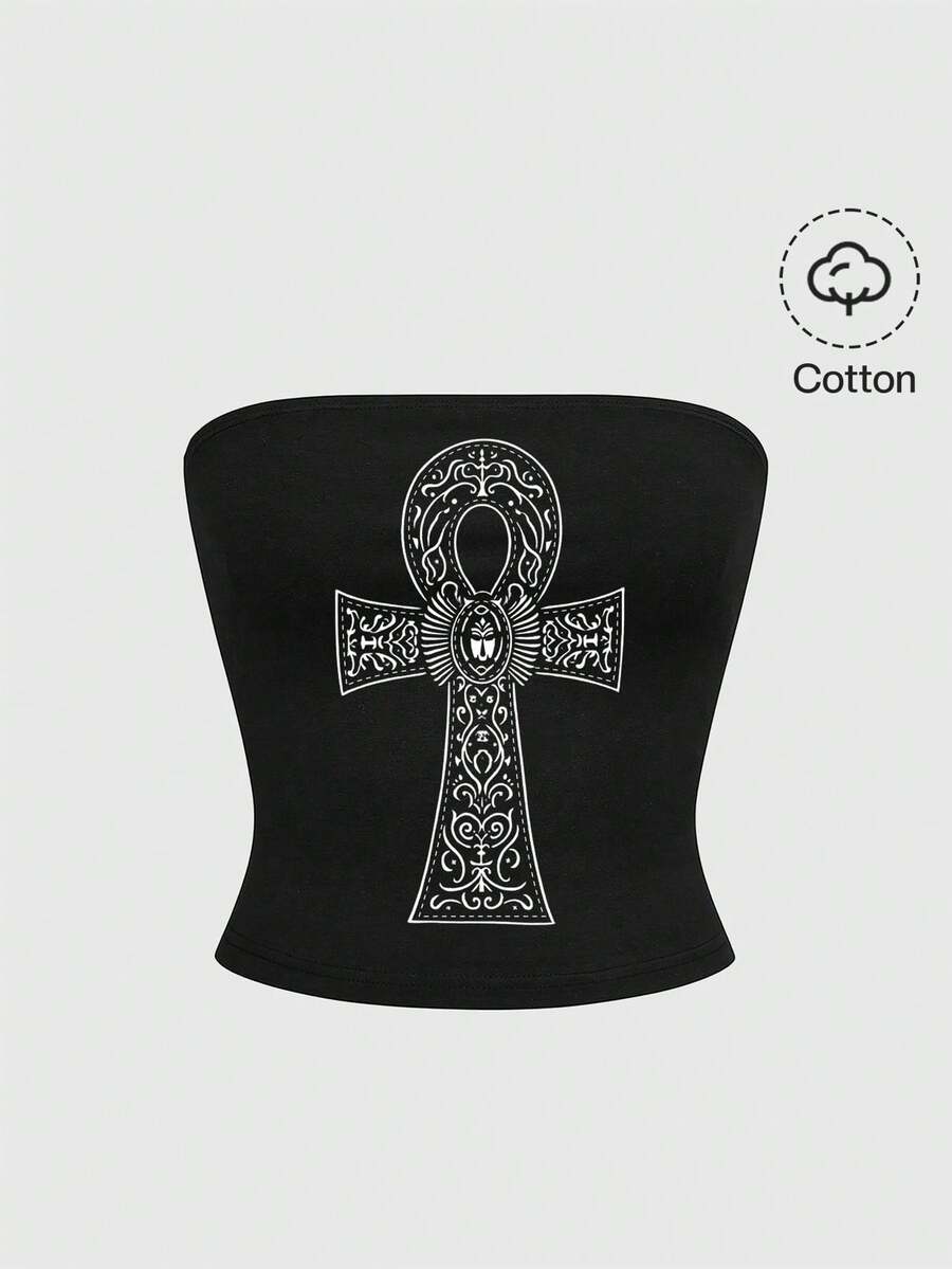 Grunge Punk Cross & Gothic Church Decor Black Crop Top For Women