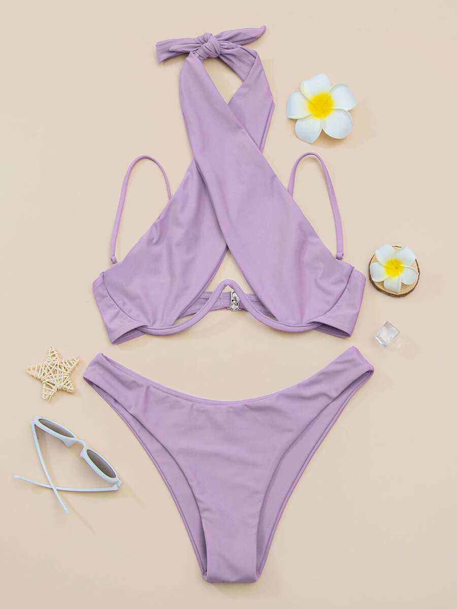 Cross Halter Underwire Bikini Set