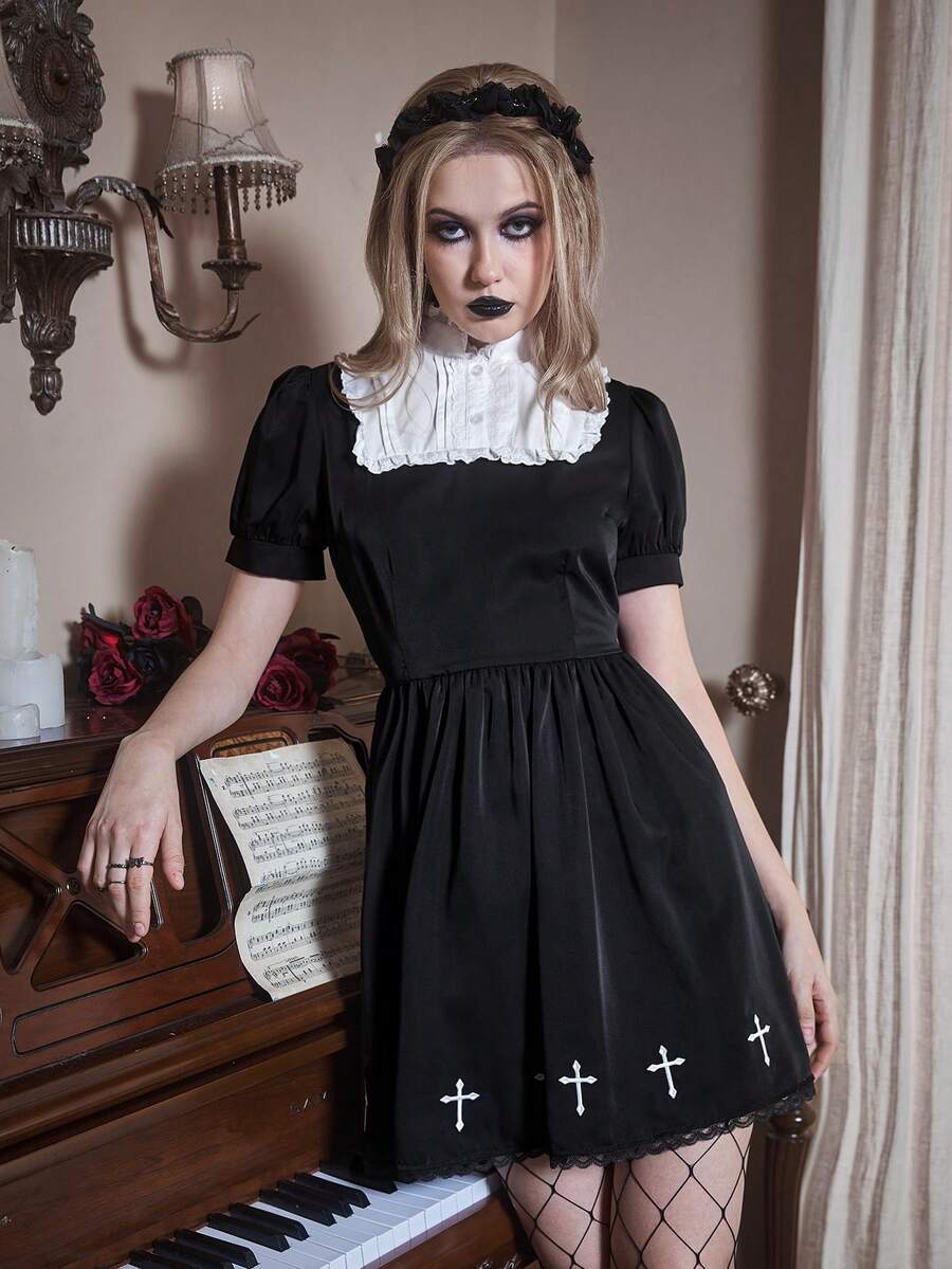Cross Pattern Colorblock Contrast Lace Dress Gothic