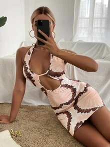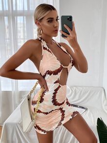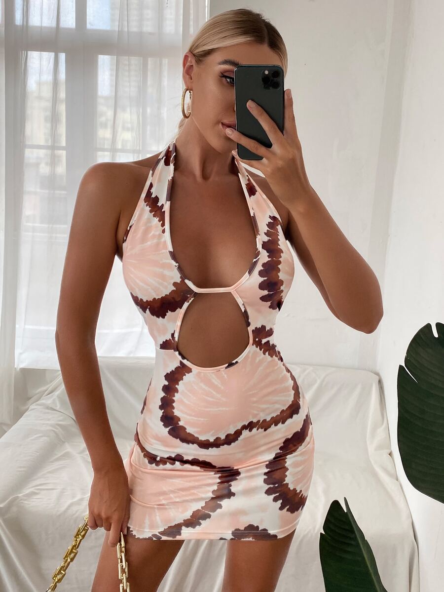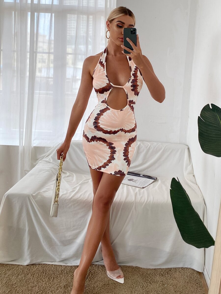 Cut Out Front Tie Dye Halter Dress