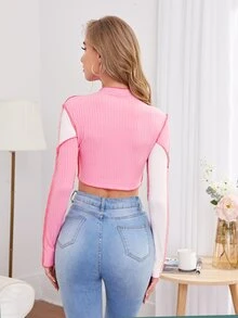 Cut and Sew Stitch Trim Crop Tee
