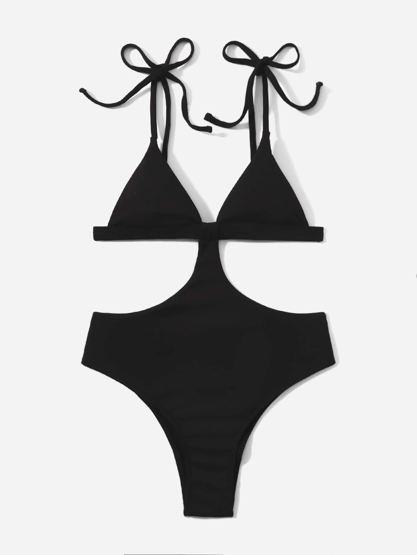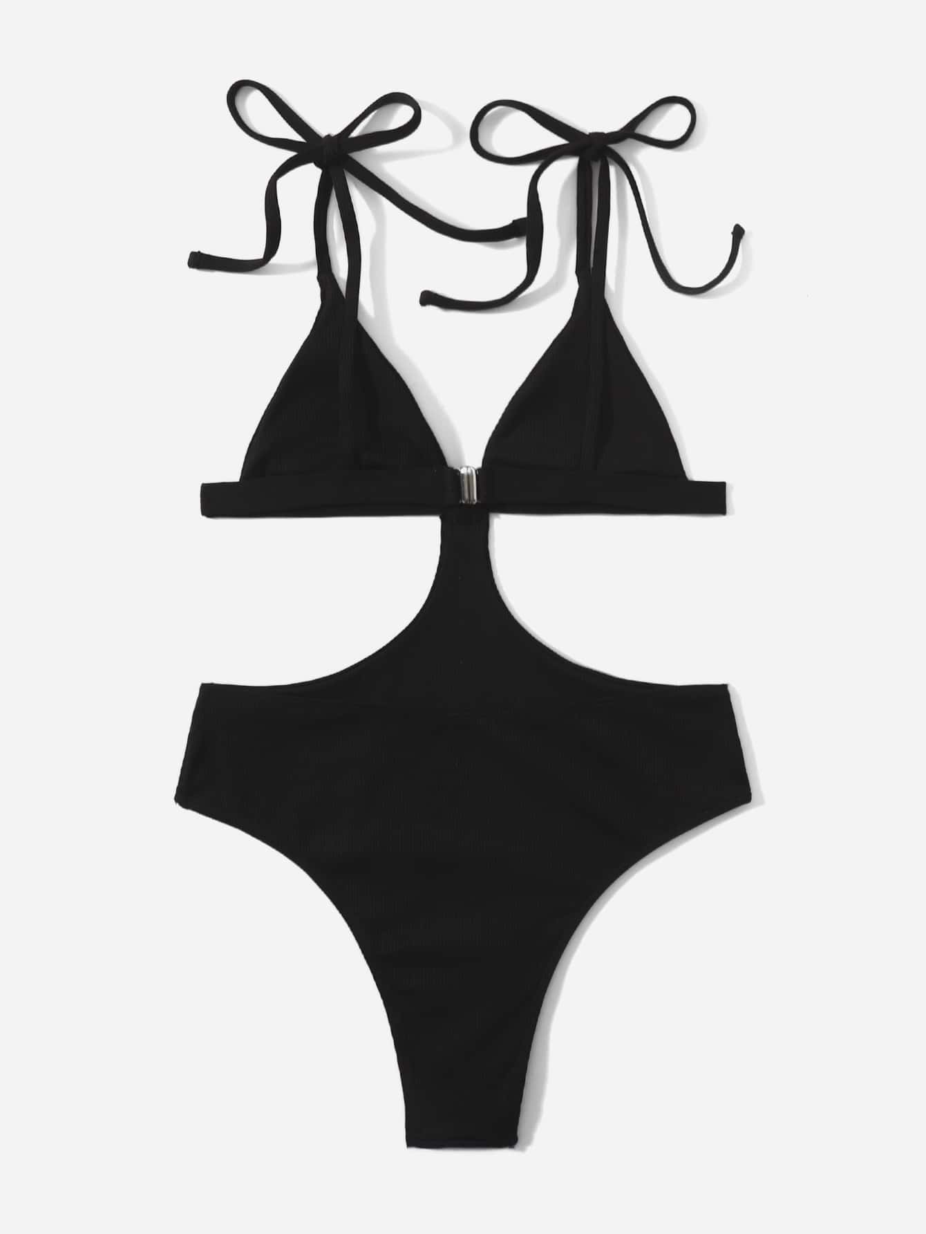 Cut-out Tie Shoulder One Piece Swimsuit