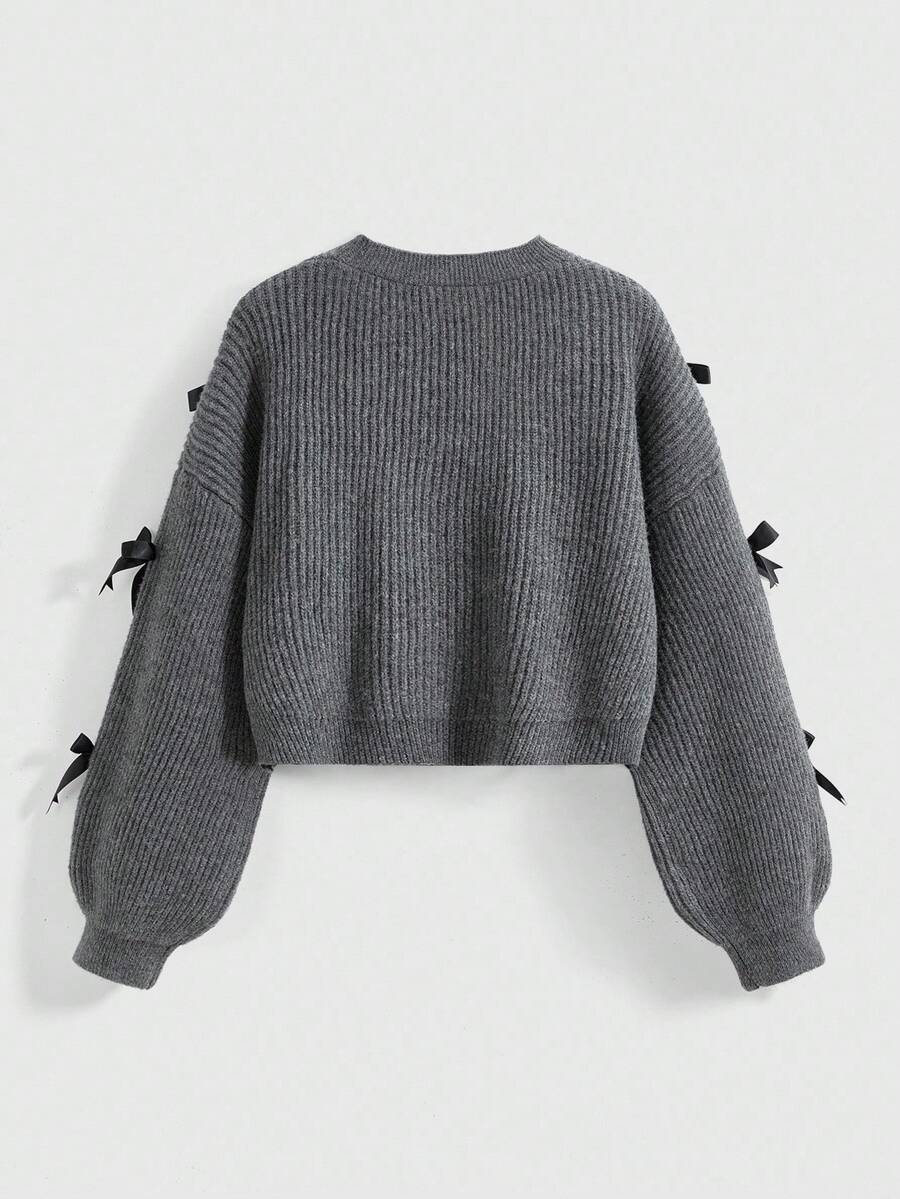 Cute 3D Bow Decor Button Front Knit Cardigan