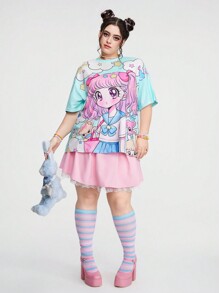 Cute Anime Girl Multicolor Casual College Style Plus Size T-Shirt