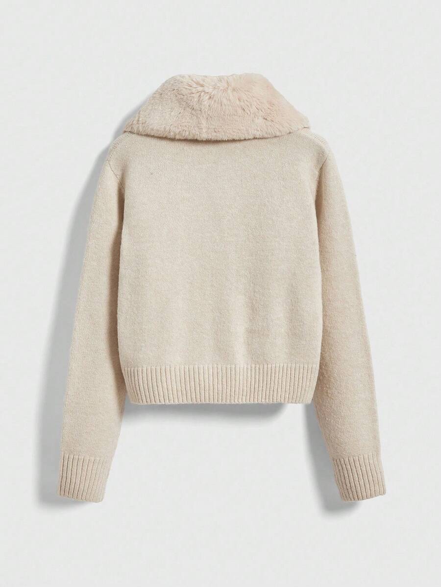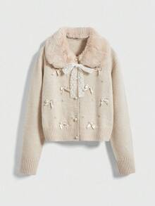 Kawaii Cute Kawaii Detachable Faux Fur Collar Bow Decor Women Cardigan