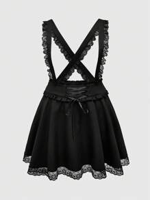 Kawaii Cute Lolita Gothic Style Lace Splicing A-Line Suspender Plus Size Skirt