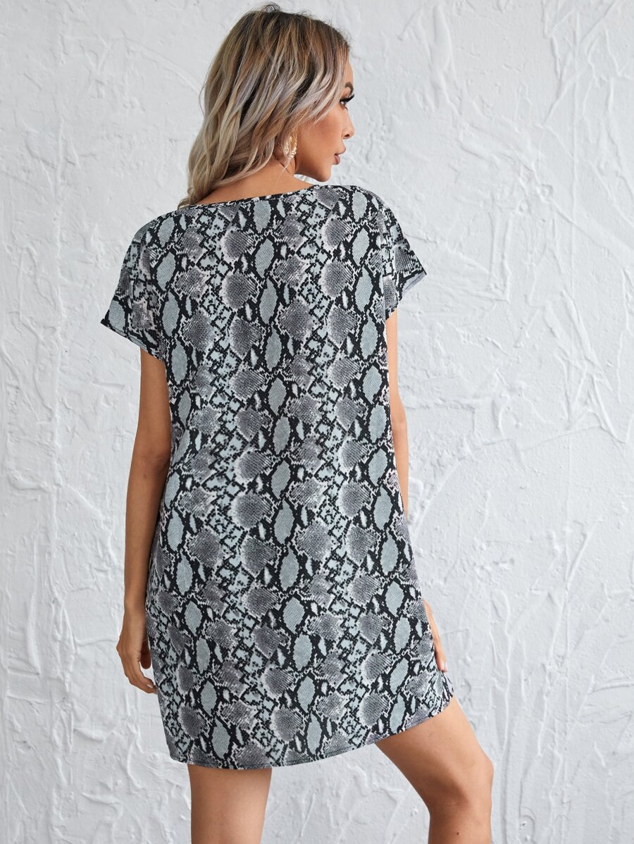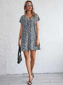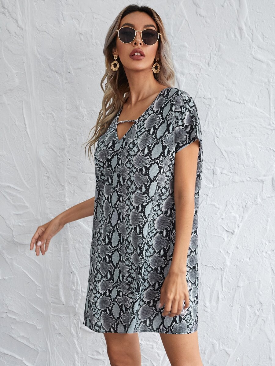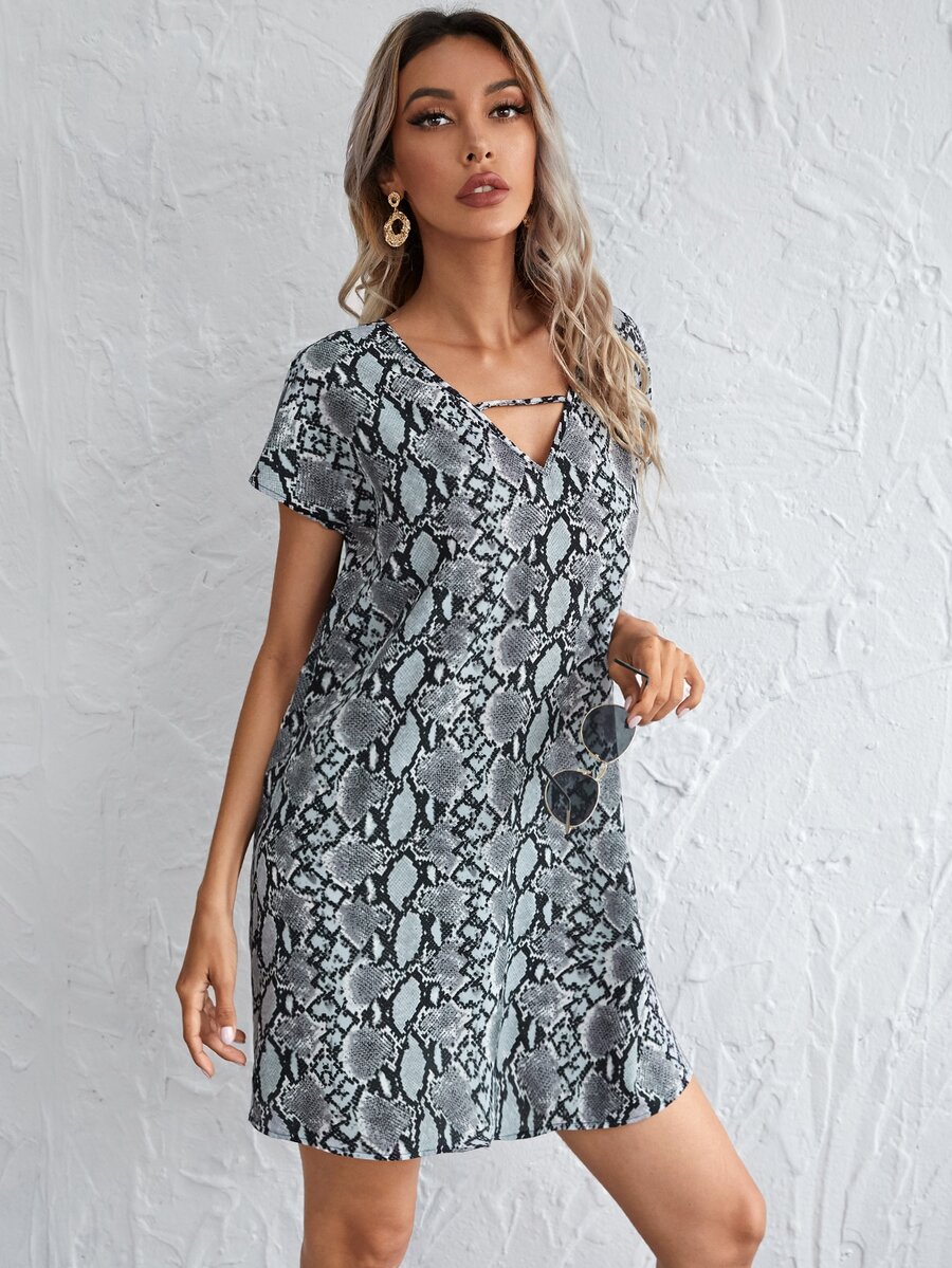 Cutout V-neck Snakeskin Print Dress