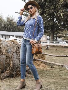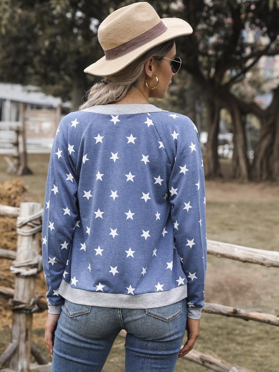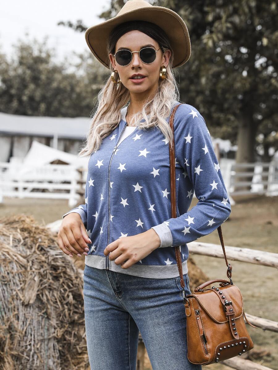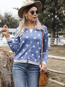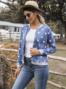 DEARCASE Raglan Sleeve Star Print Bomber Jacket