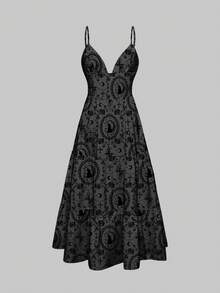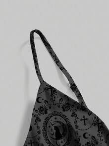 Goth Dark Forest Gothic Elegant Cat Vine Cross Rose Valentine's Day Black & Gray Sexy Romantic Backless Zipper Dress For Women