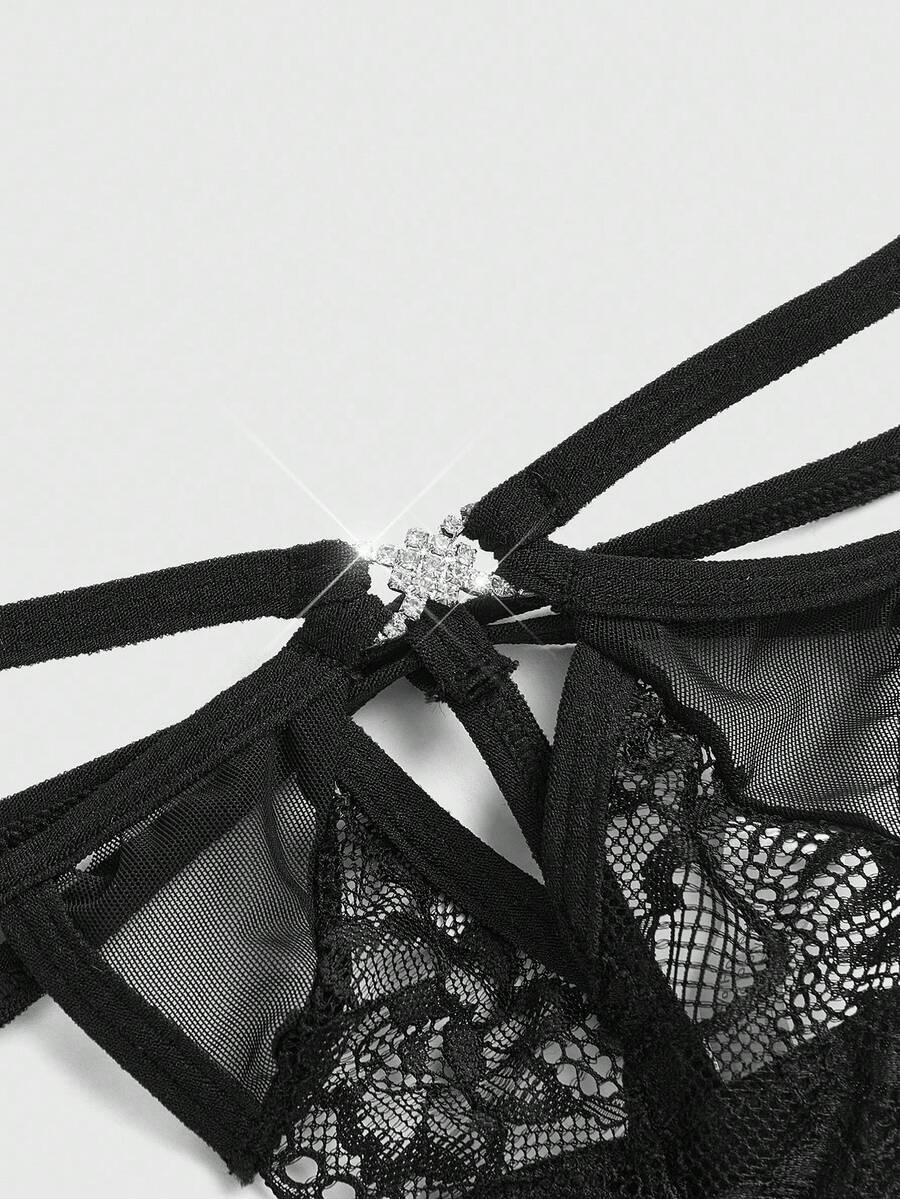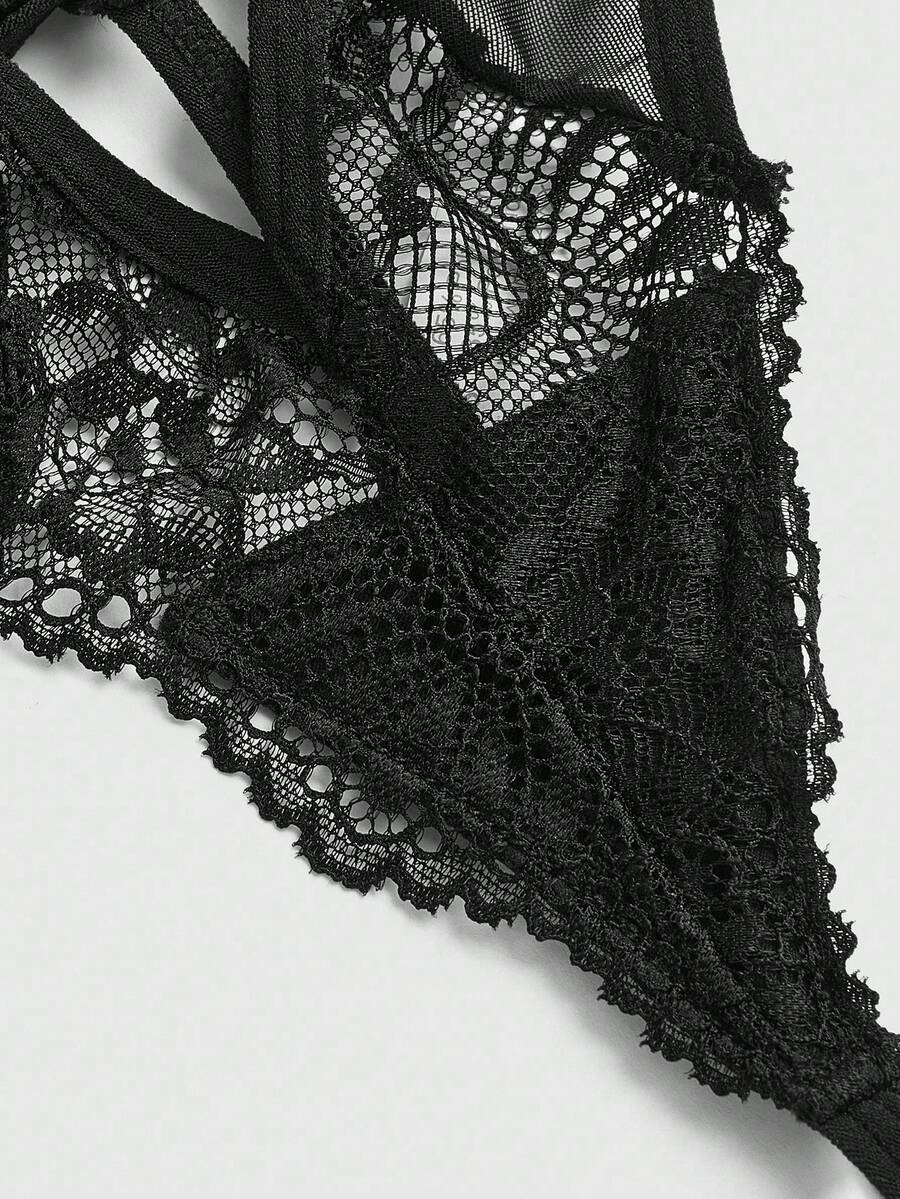 Dark Gothic Style Eyelash Lace Trim Thong Panty