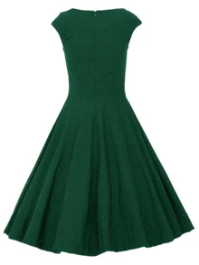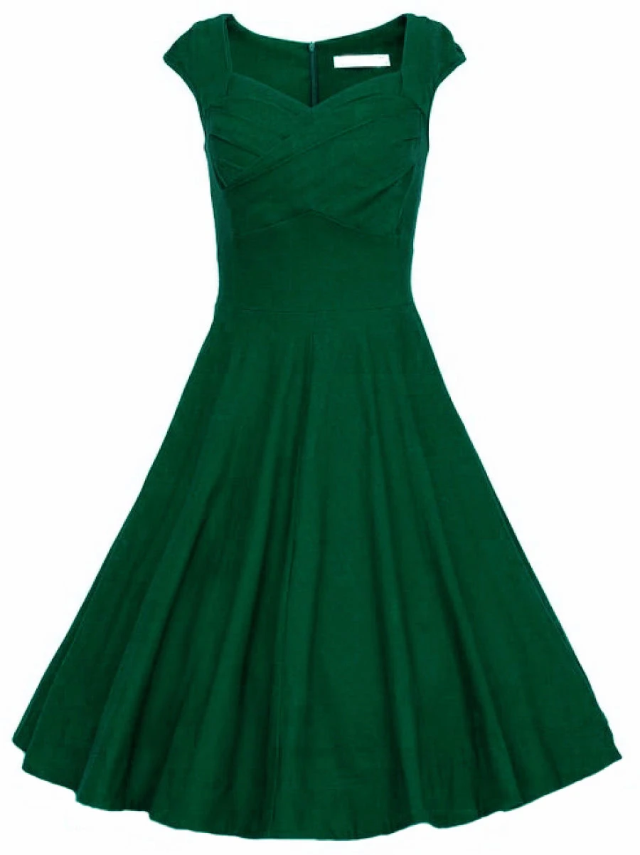 Dark Green Raw Waterfall Underskirt Heart Shape Collar Sleeveless Flare Dress
