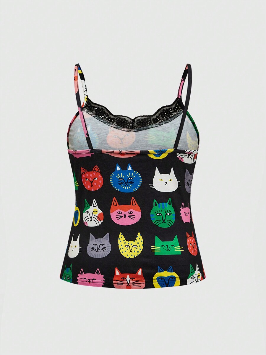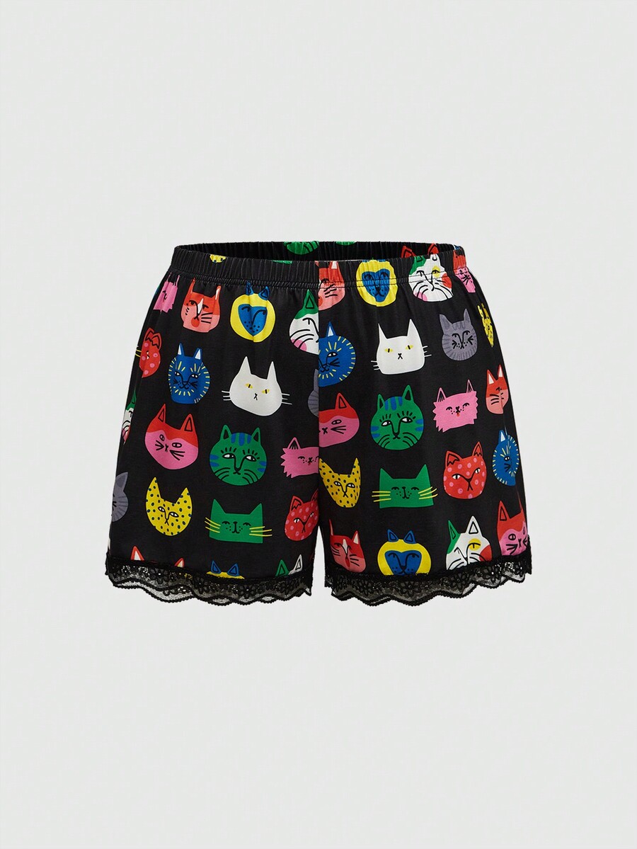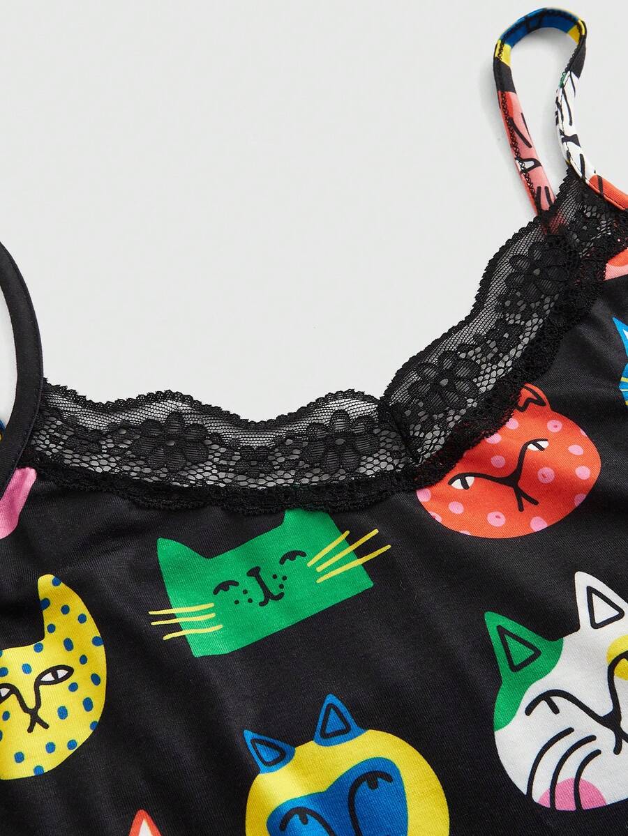 Dedraw Studio Ladies" Colorful Cat Lace Splice Plus Size Homewear Set