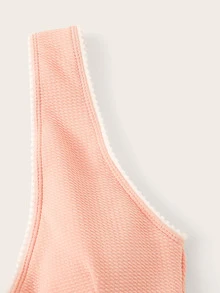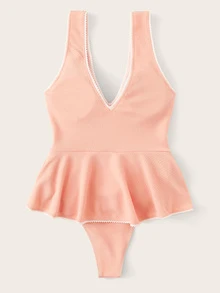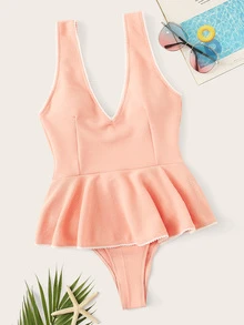 Deep Plunge Peplum Textured One Piece Swimsuit