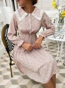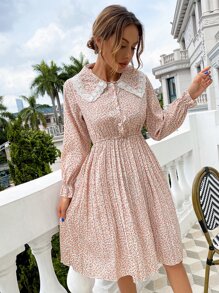 Ditsy Floral Peter Pan Collar Pleated Hem Dress