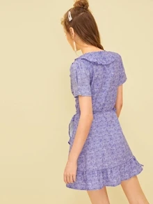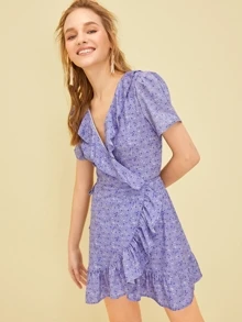 Ditsy Floral Print Ruffle Hem Wrap Dress