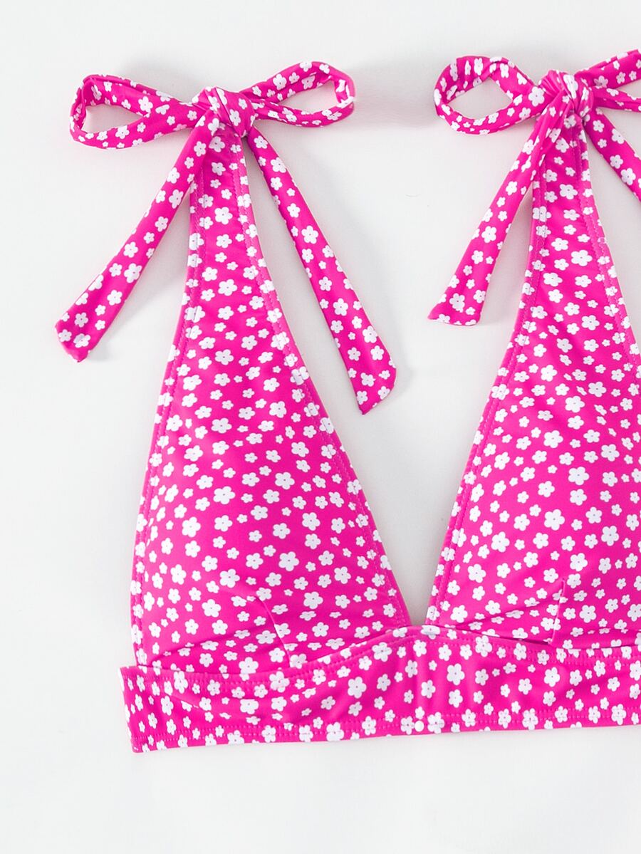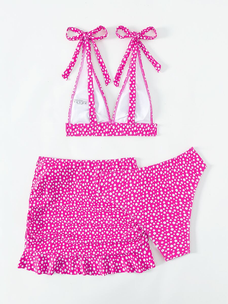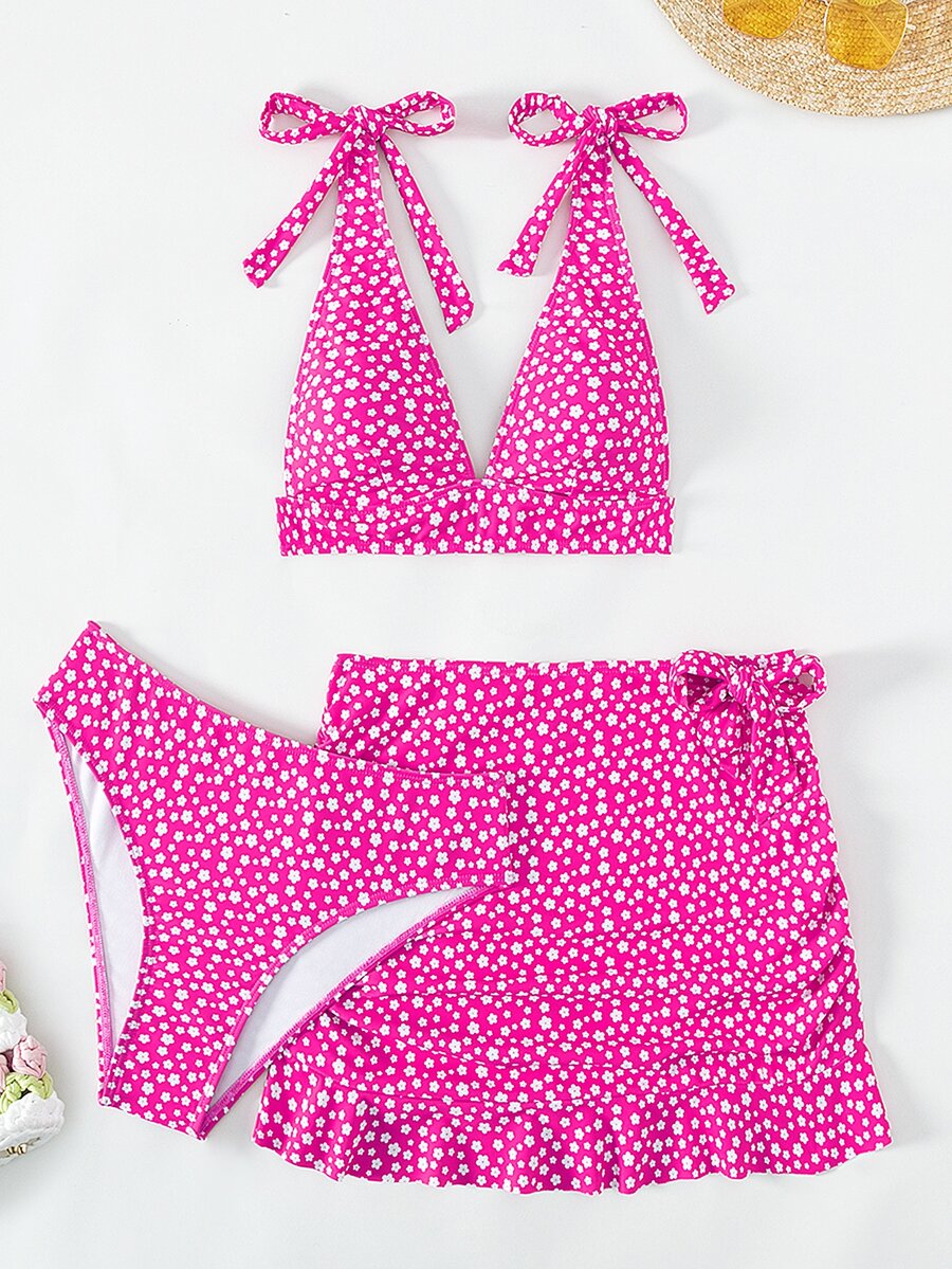 Ditsy Floral Tie Shoulder High Waist Summer Beach Bikini Set & Beach Skirt