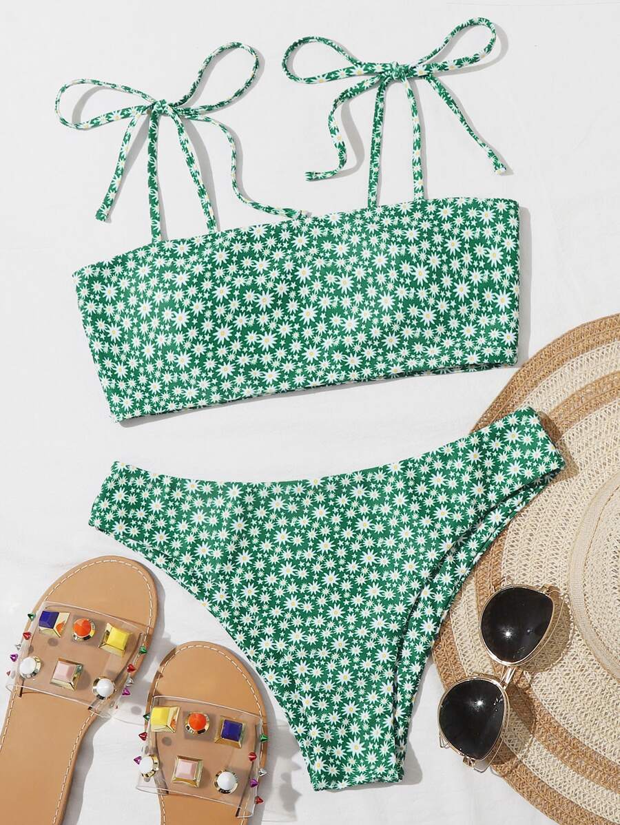 Ditsy Floral Tie Strap Bikini Set Summer Beach