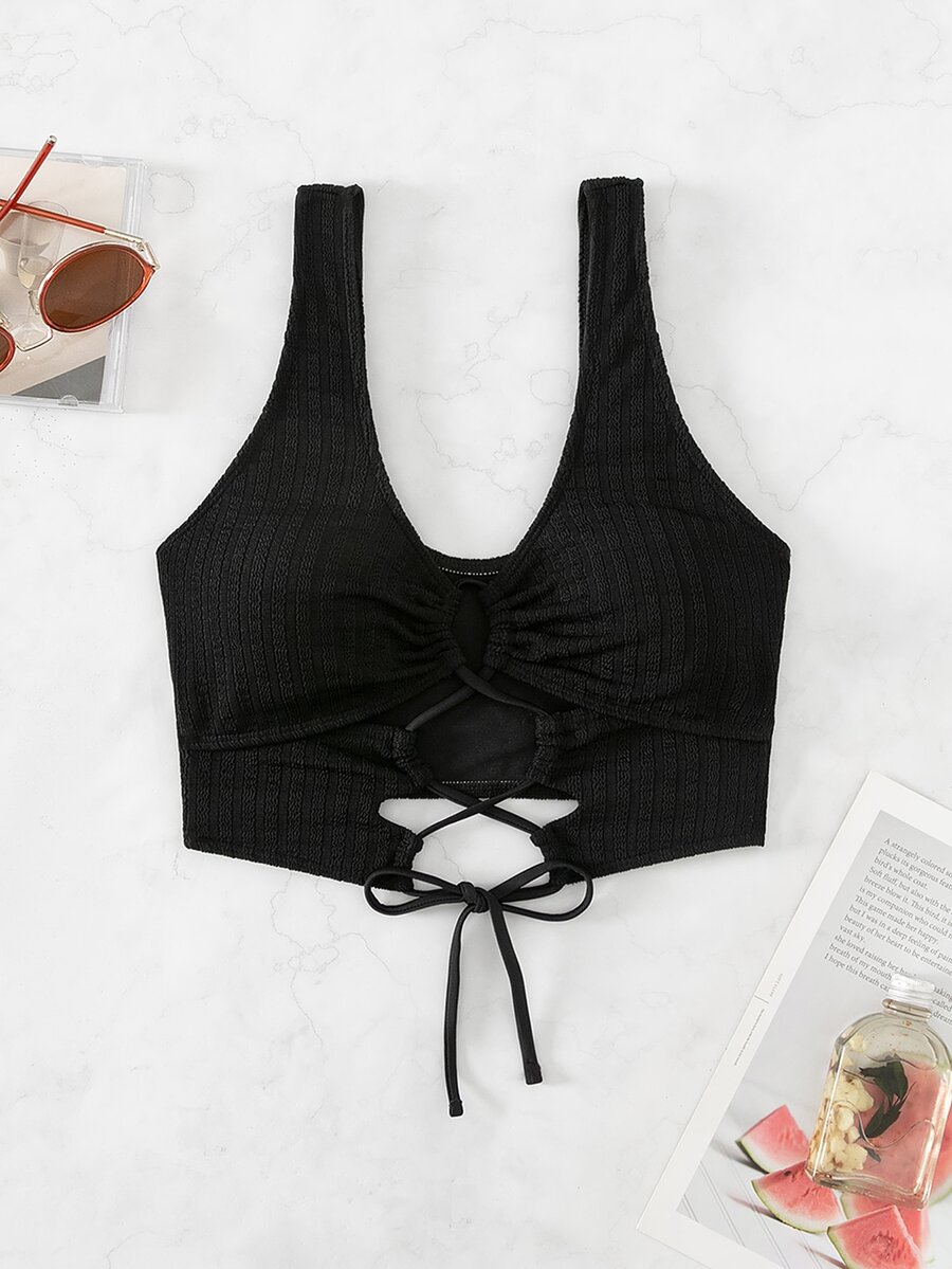 Drawstring Front Sexy Bikini Top, For Summer Beach Vacation