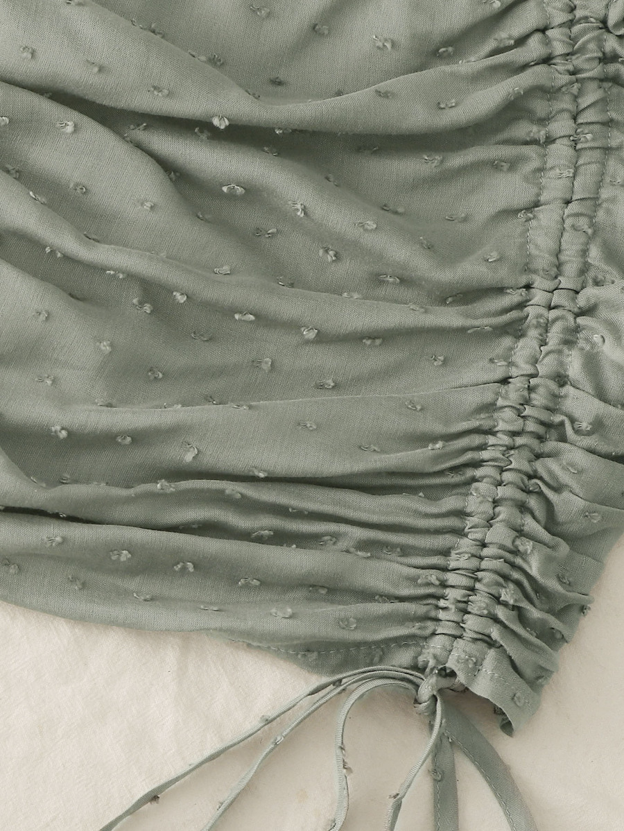 Drawstring Knot Ruched Swiss Dot Crop Top