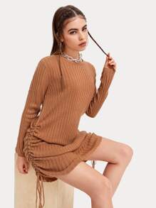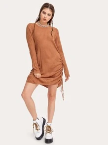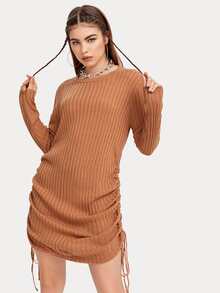 Drawstring Ruched Side Ribbed Knit Sweater Dress
