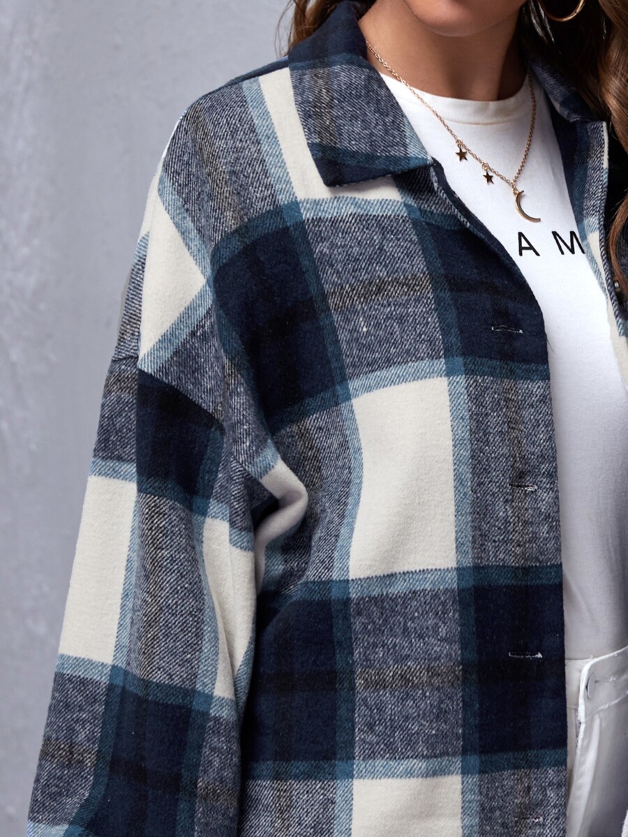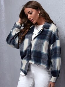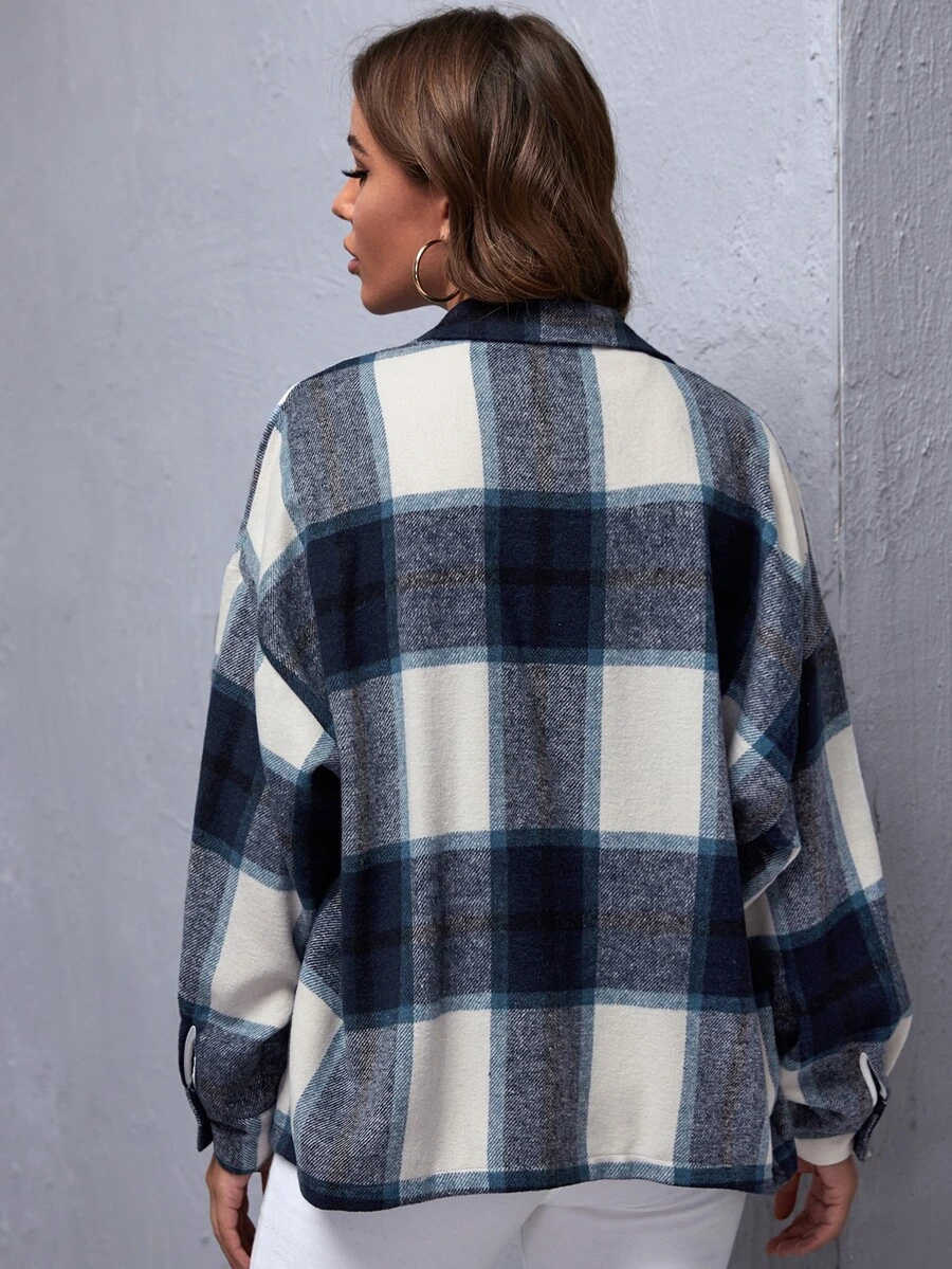 Drop Shoulder Buffalo Plaid Coat