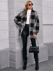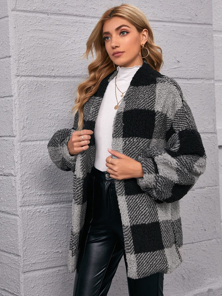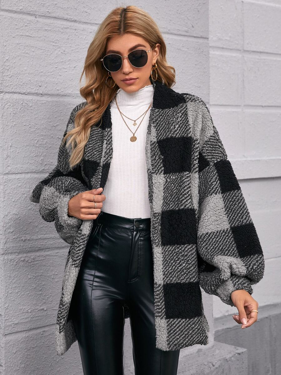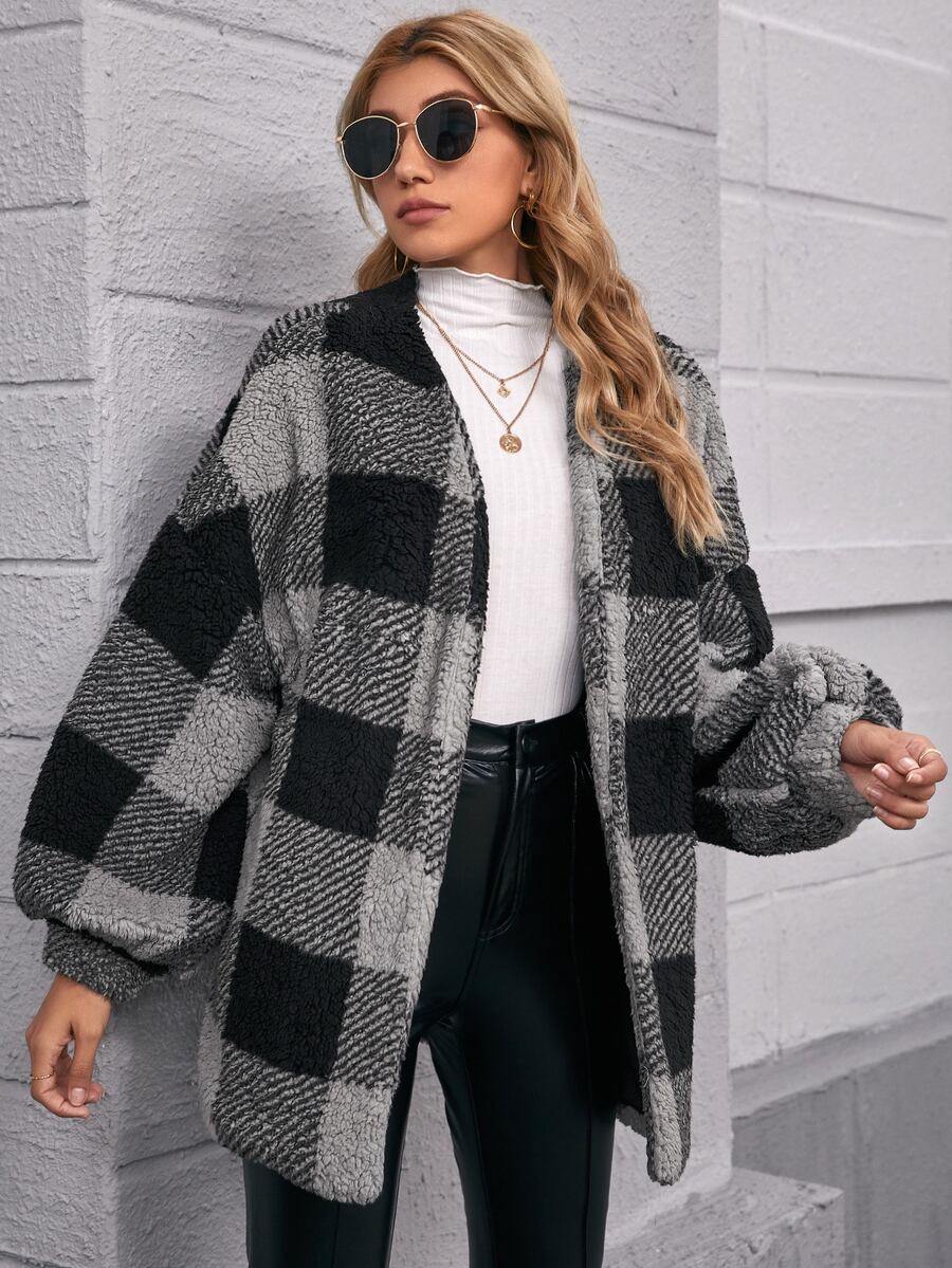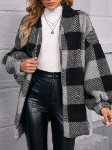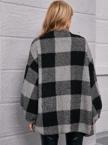 Drop Shoulder Buffalo Plaid Teddy Coat