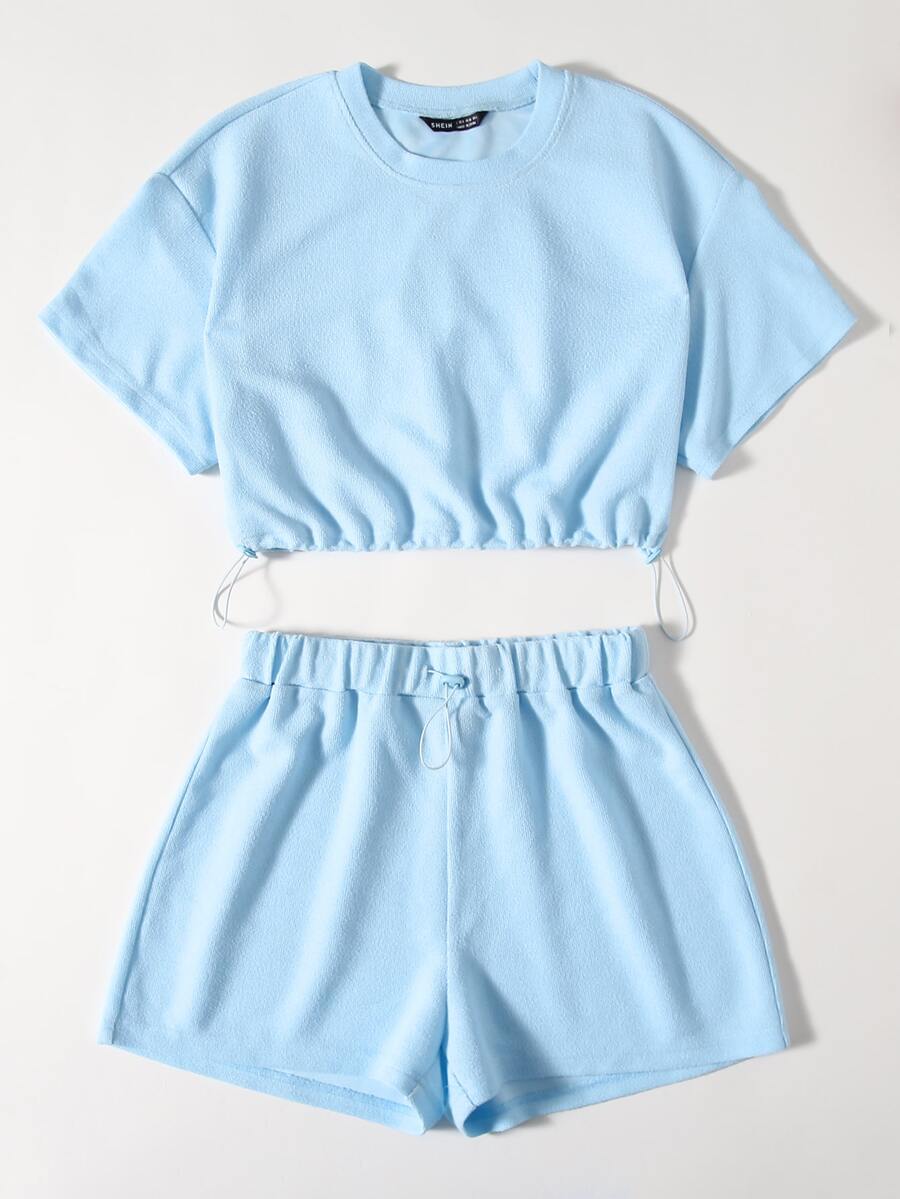 Drop Shoulder Drawstring Crop Tee & Shorts Set