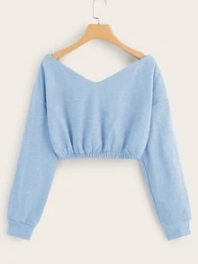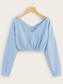 Drop Shoulder Elastic Hem Crop Sweatshirt