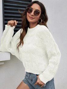 Drop Shoulder Pointelle Knit Oversized Sweater