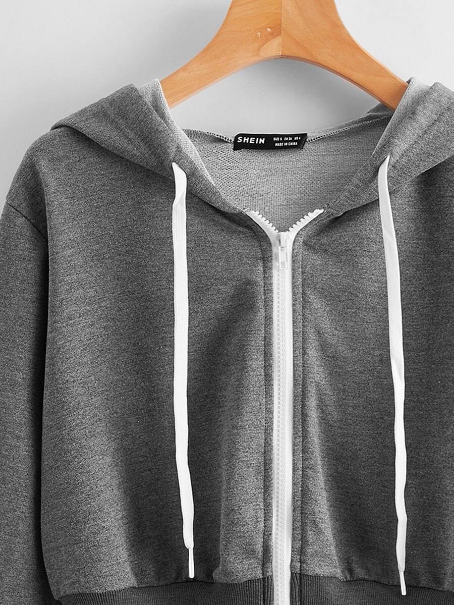 Drop Shoulder Zip Up Drawstring Crop Hoodie