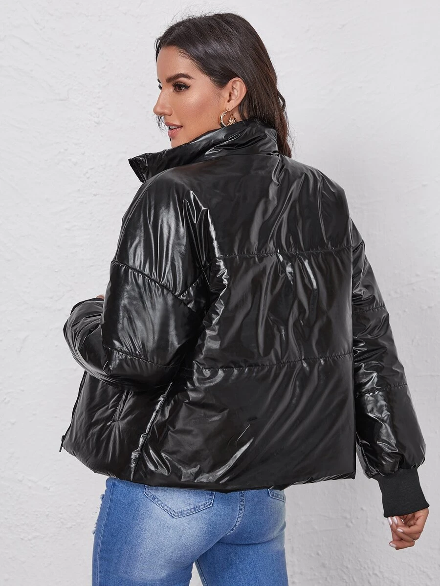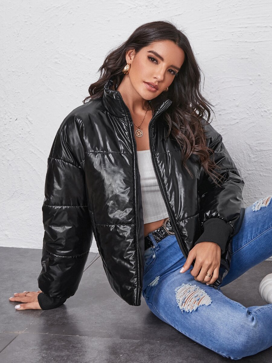 Drop Shoulder Zipper Up Puffer Jacket