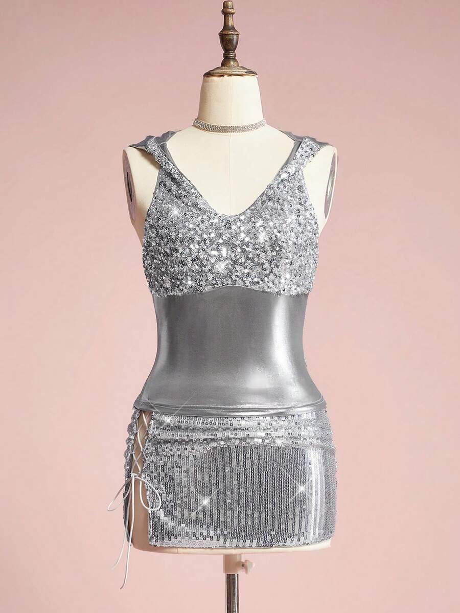 EDITION Shiny Sequin Patchwork Hooded Backless Chain Decorated Women Tank Top, Suitable For Music Festival Party
