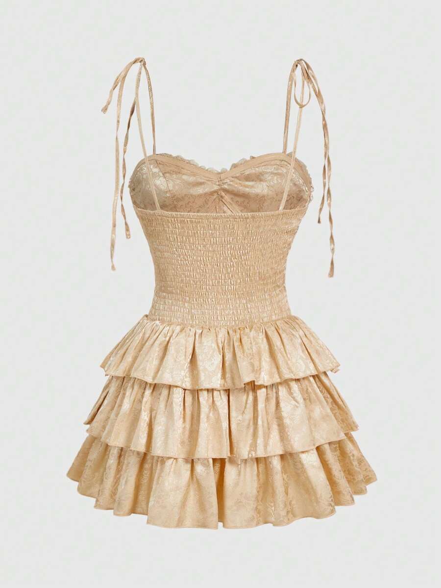 EDITION Women's Vintage Palace-Style Multilayer Ruffle Textured Satin Fabric Dress, Suitable For Wedding Season