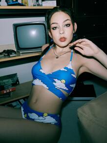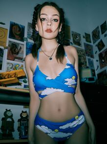 EMMILIANA Street Life Cloud & Cartoon Face Graphic Criss Cross Bikini