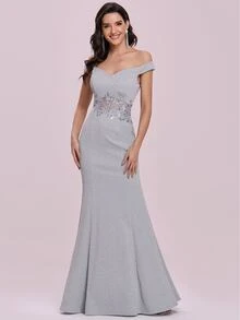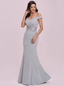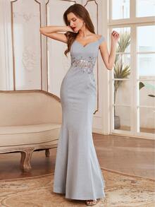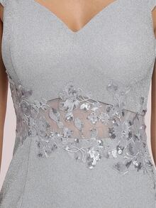 EVERPRETTY Contrast Sequin Mesh Insert Glitter Prom Dress