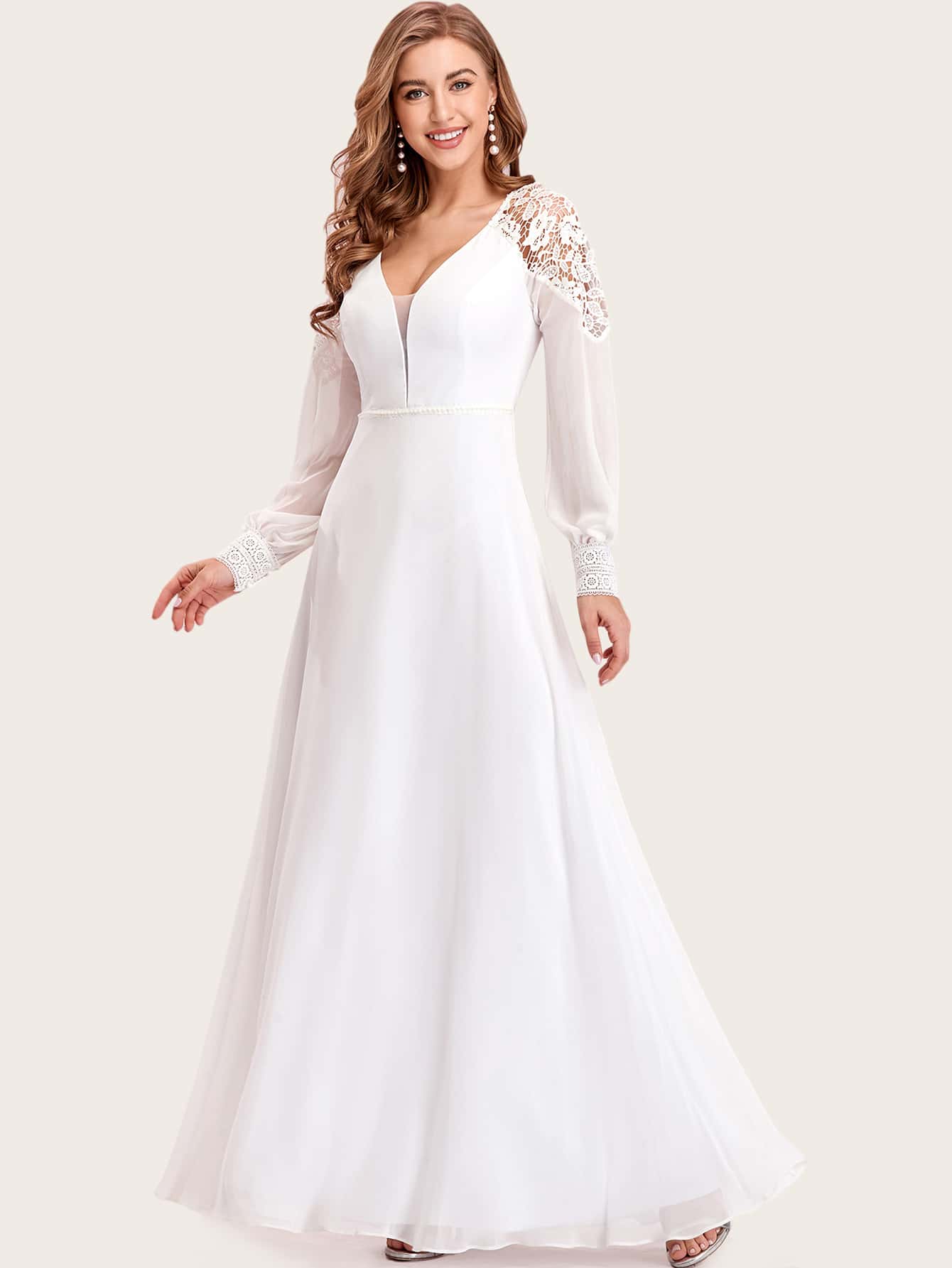 EVERPRETTY Zip Back Guipure Lace Insert Prom Dress