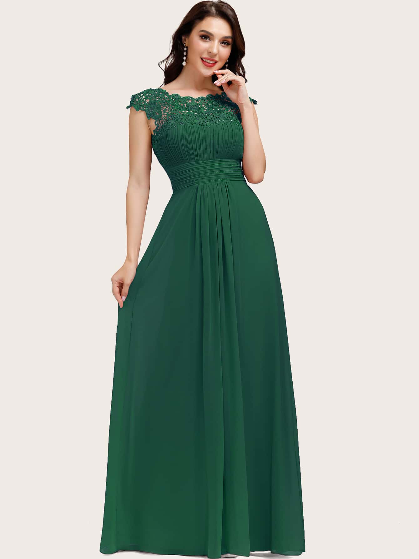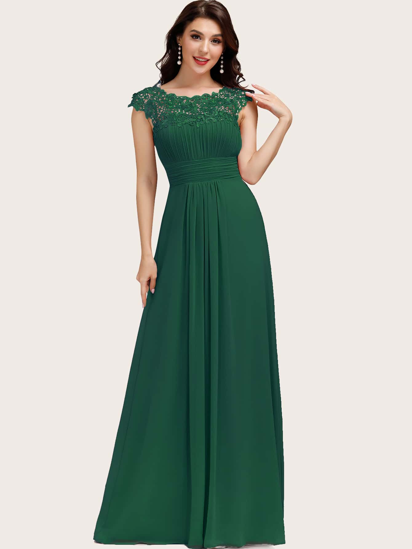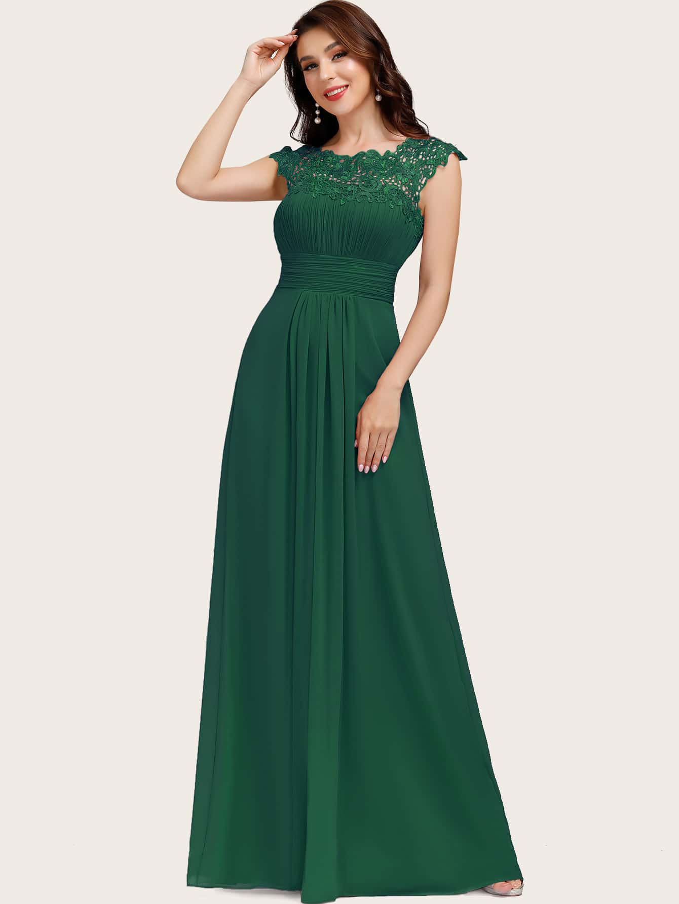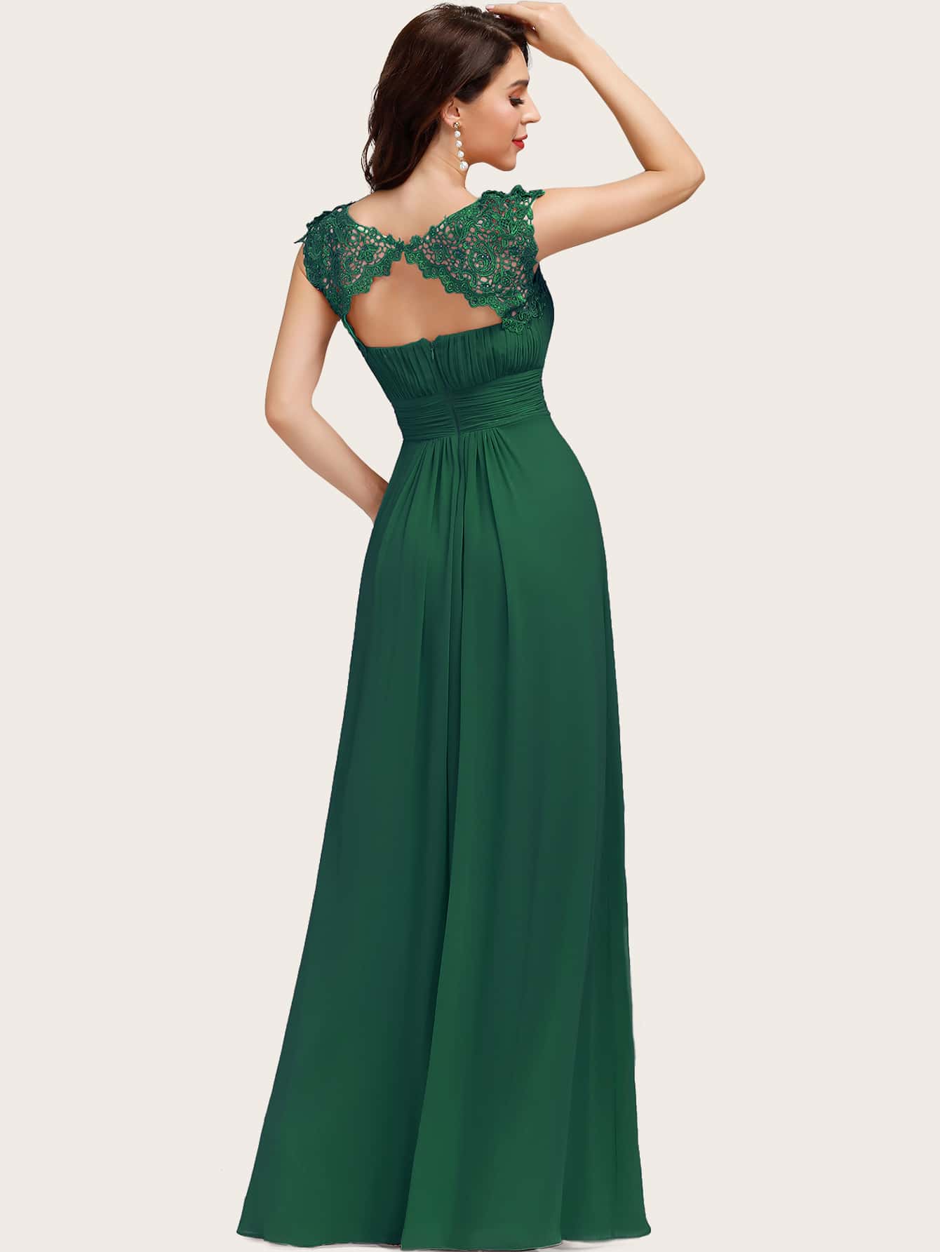 EVERPRETTY Cut Out Back Guipure Lace Trim Chiffon Prom Dress