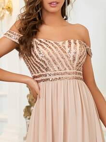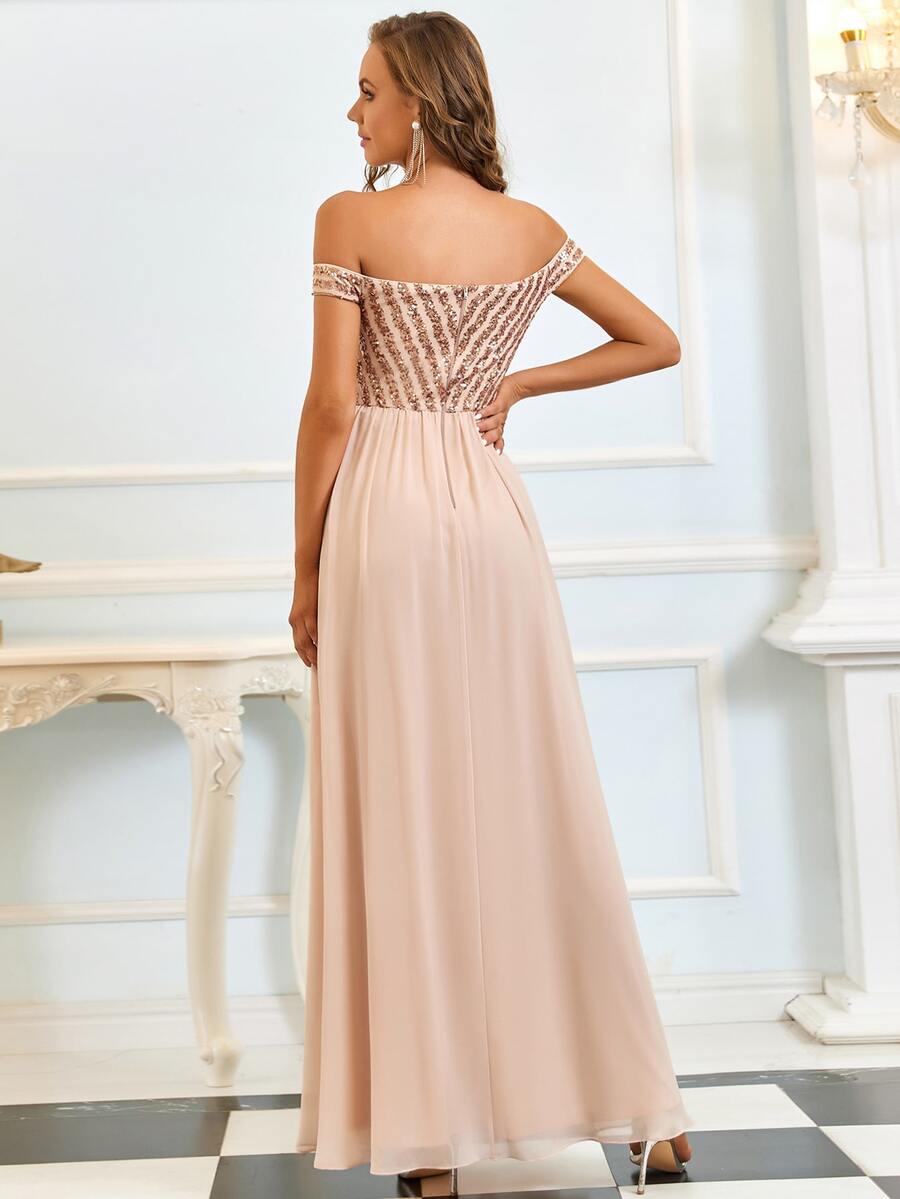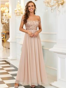 EVERPRETTY Off Shoulder Sequin Bodice Prom Dress