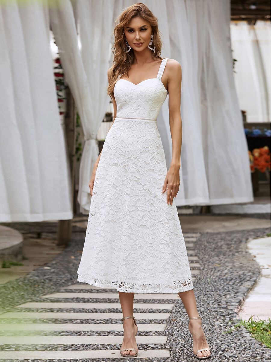EVERPRETTY Zipper Back Lace Overlay Slip Dress
