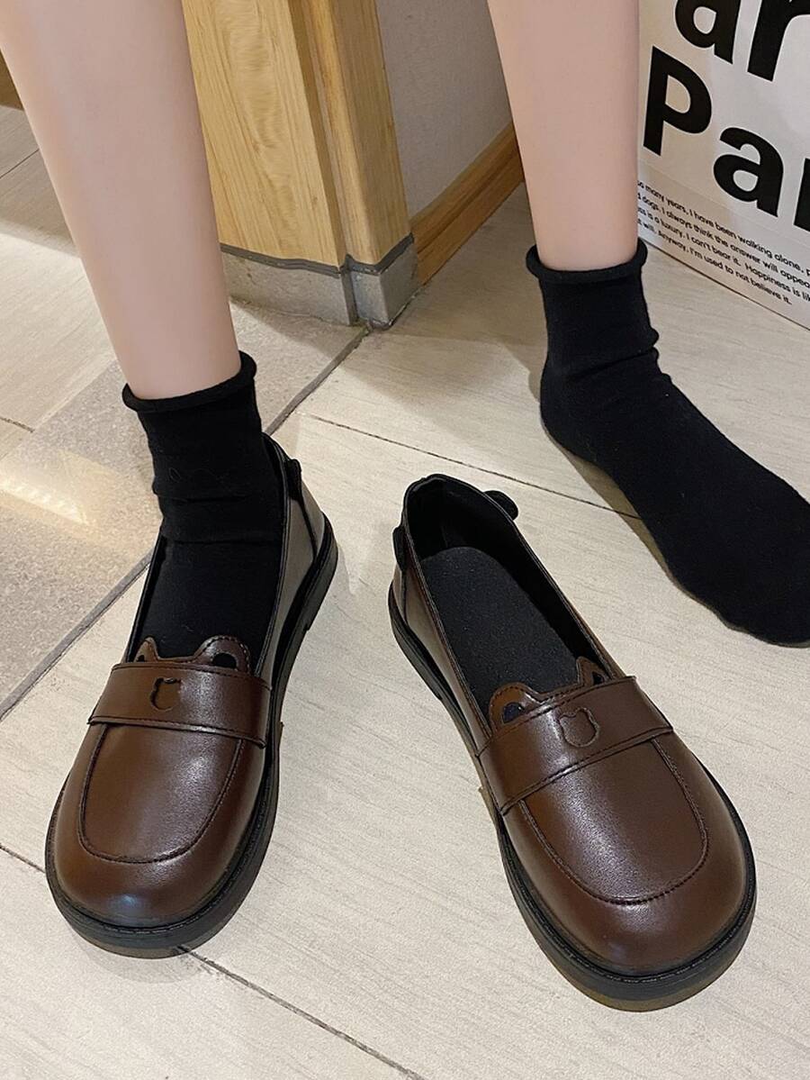 Ear Decor Cut Out Loafer Shoes