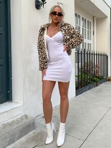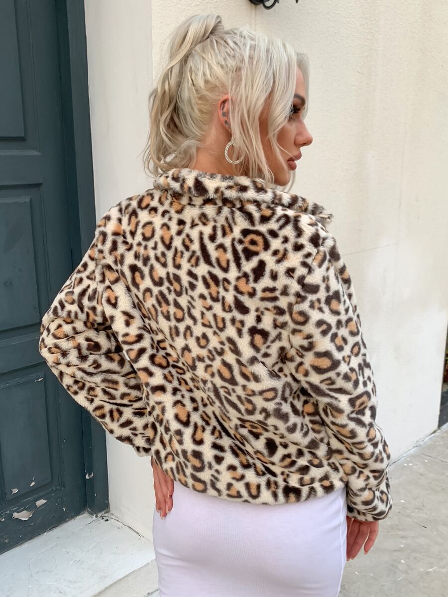 Eilly Bazar Leopard Zip Up Fuzzy Coat