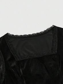 EDITION Elegant Velvet Lace Flare Sleeve Women T-Shirt