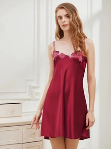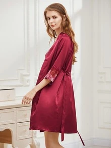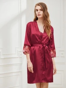 Embroidered Satin Slip Night Dress With Kimono Robe