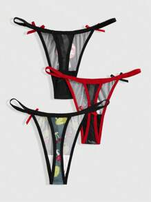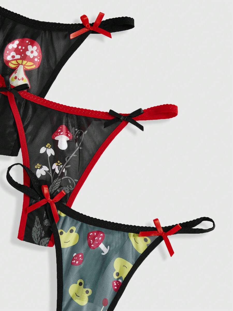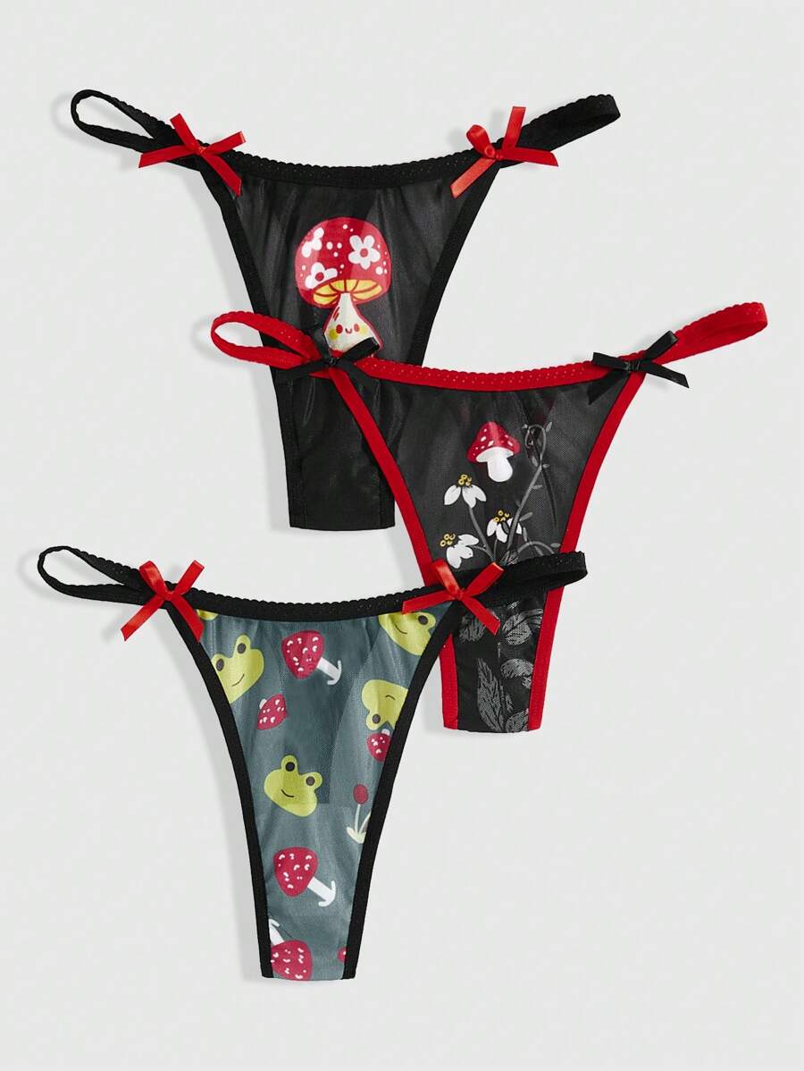 Emi Bee 3pcs/Set Printed Mushroom & Cartoon Frog Combination Thong Underwear