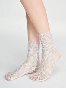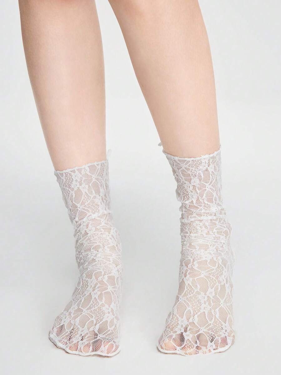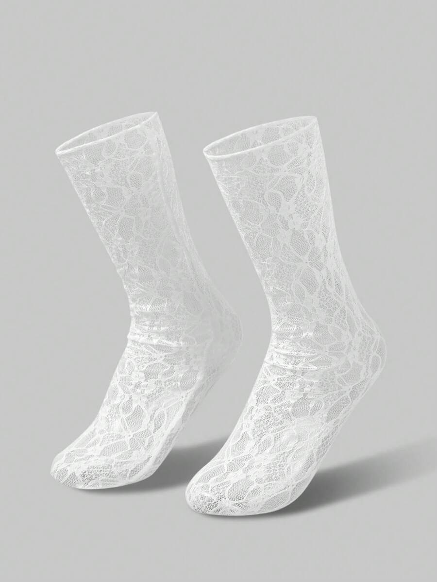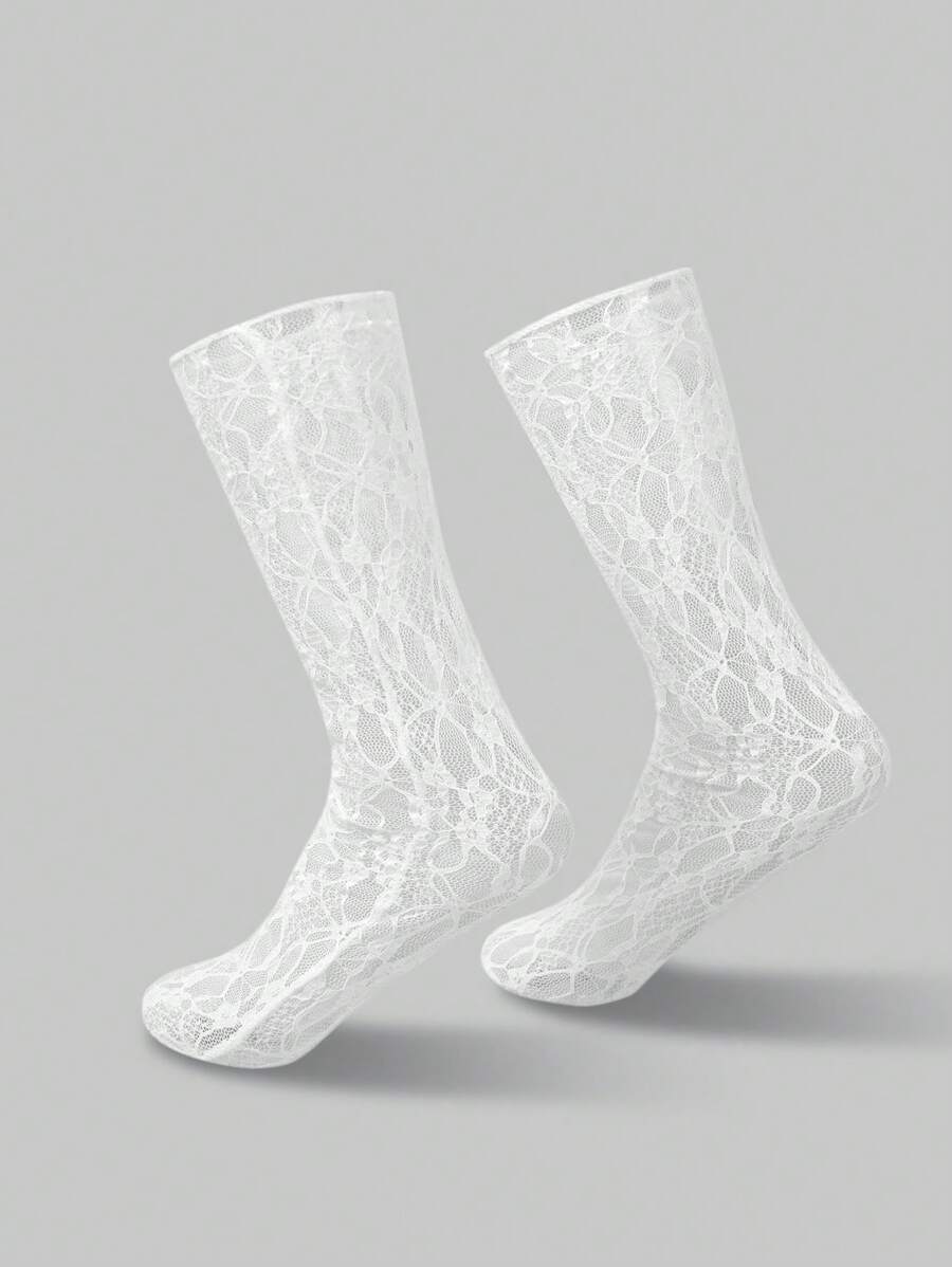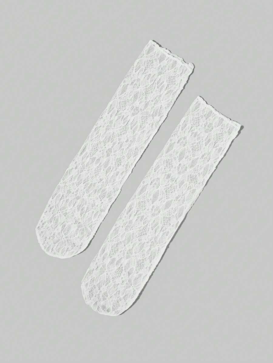 Fairycore 1 Pair White Cute Lolita Mary Jane Lace Hollow Out Thigh High Socks